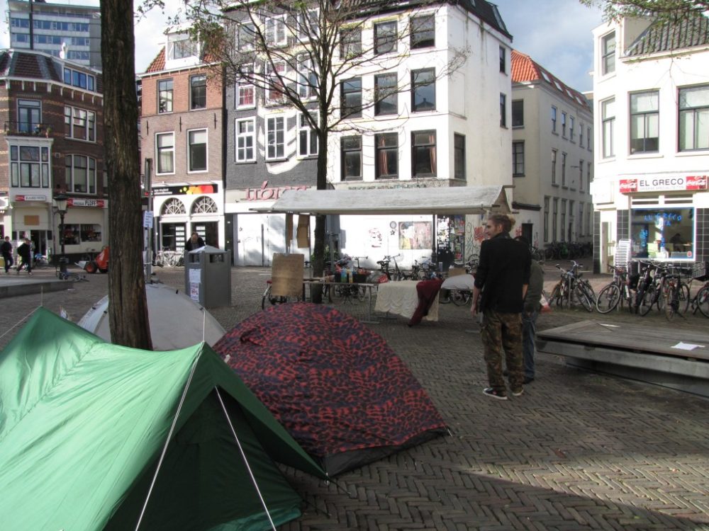 Een kleine groep aanhangers van het Occupy Utrecht initiatief heeft eergisteren in de loop van de dag haar tenten opgeslagen op de Ganzenmarkt. Omdat de groep nog steeds groeit, kan nog niks over het aantal deelnemers worden gezegd. De actievoerders willen een aantal dagen blijven zitten.