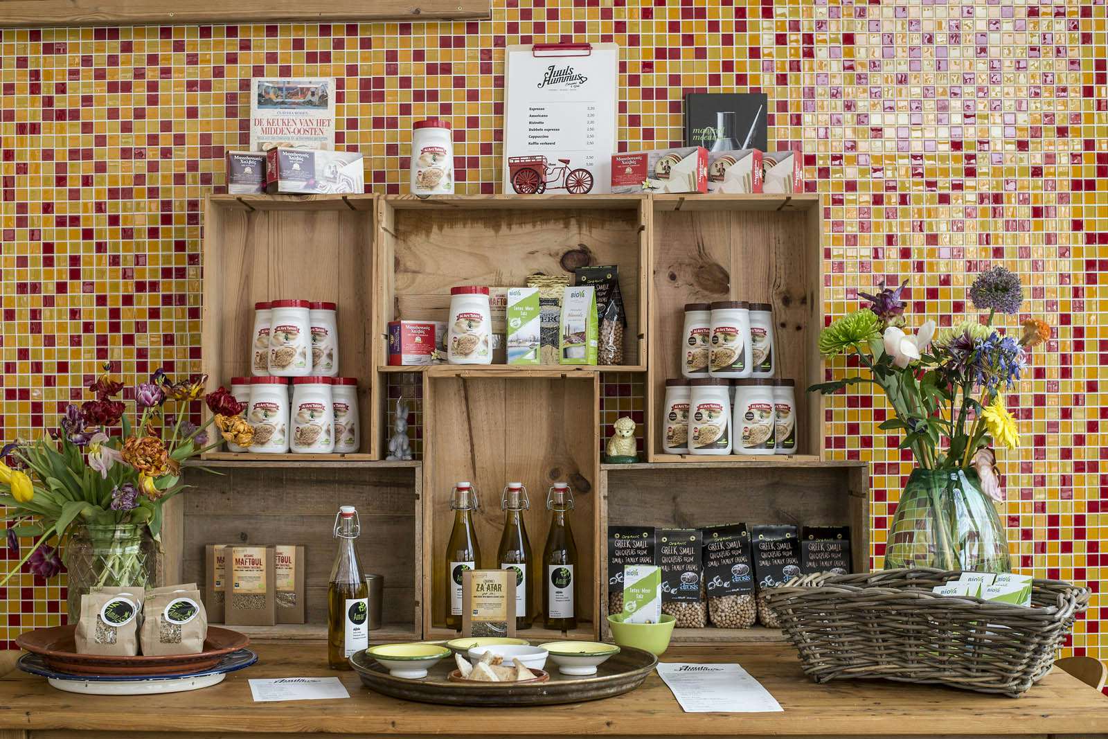 In deze vrolijke eetwinkel en deli wordt hummus niet enkel gezien als smeersel voor op brood, maar ook als een volwaardig hoofdgerecht. Hier krijg je bowls hummus met verschillende toppings en daarnaast een pitabroodje, pittige saus, dressing, olijven en augurk. Behalve hummusmaaltijden staan ook baba ganoush, auberginepuree, en verschillende salades op het menu.