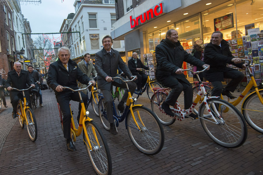 Vanaf Utrecht Centraal stapte iedereen op de fiets om samen de ‘eerste etappe’ door Utrecht te rijden. In de Winkel van Sinkel volgde de officiële presentatie van de touretappes.