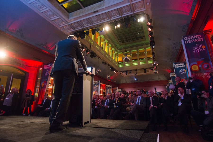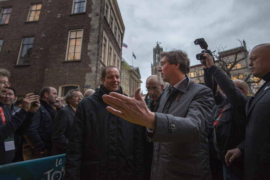 Burgemeester Wolfsen kwam aan het woord en vertelde trots over de stad Utrecht en de start van de Tour de France: “Een Grand Départ is als een droom die uitkomt. Het peloton boordevol toprenners, met daarvoor en -achter de hele karavaan van auto’s en motoren vier dagen aanwezig in onze stad. Maar ook in de aanloop er naartoe zal er van alles te beleven zijn. Het wordt een onvergetelijk evenement.” Hij vertelde ook over hoe verbonden de Utrechters met de fiets zijn: “Er zijn meer fietsen in Utrecht dan mensen. Ik moet wel eerlijk bekennen, aan Christian Prudhomme, dat hier niet iedereen voor het rode licht stopt.”