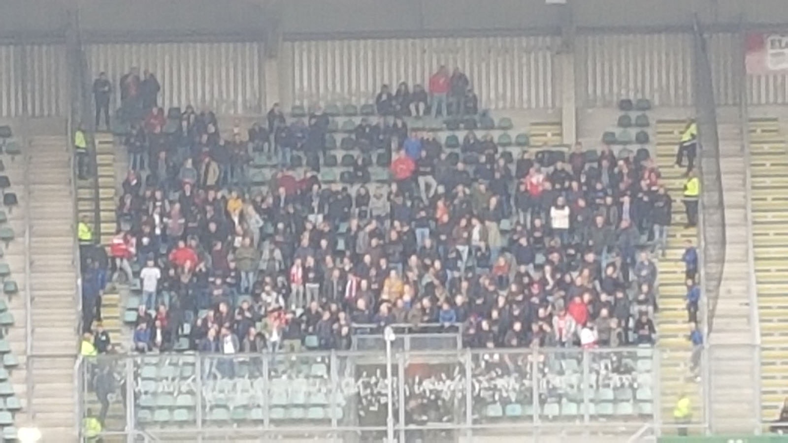 Bij het ADO-stadion was het voor het Haagse supportershome weer druk en gezellig, en met een stevige pas liepen wij er voorbij. Tegen alle verwachtingen in waren in het stadion nog meer FC Utrecht-supporters. We gedroegen ons rustig en bedeesd maar toch werden we bekeken door de oudere harde kern van ADO. Ze kwamen een handje geven, een praatje maken en ze deelden bier uit dat naar verluidt prima smaakte. Ik hield het bij een cola.