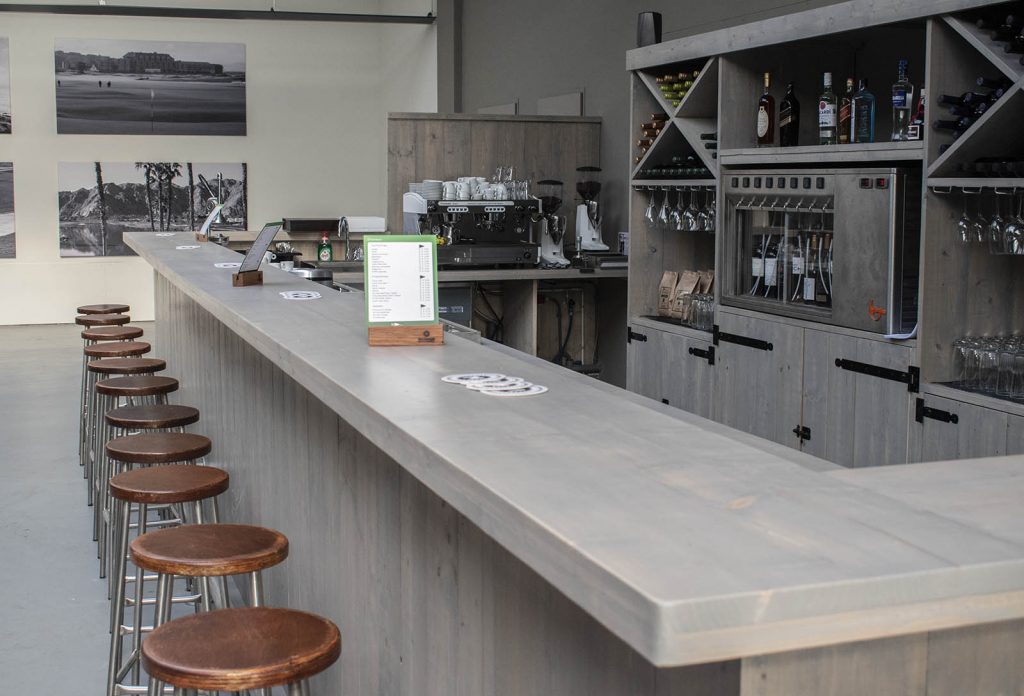De eigenaren van HomeCourse, vader Theo en zoon Sjaak Wolferink, hebben de afgelopen maanden hard gewerkt om van hun hobby hun beroep te maken. “We zijn eind september twee dagen naar de Ryder Cup geweest in Frankrijk: één van de grote golftoernooien. Dat zijn de enige twee ‘vrije’ dagen in de afgelopen maanden, maar dat was het zeker waard”, vertelt Sjaak trots terwijl hij aan de bar staat.