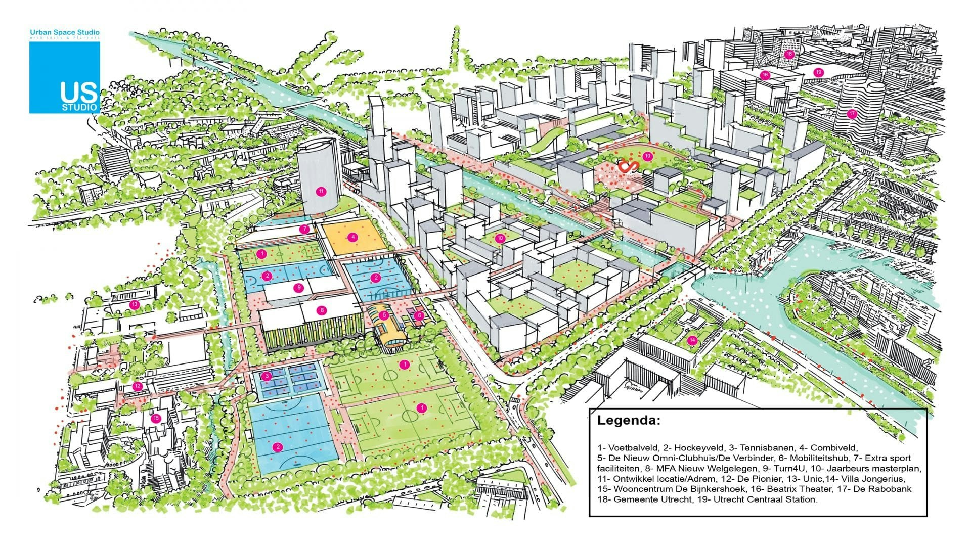 Artist’s impressions voor ‘Sportpark 2.0’ ontworpen door Urban Space Studio Architects & planners van clublid Amar Baghdadi laten zien hoe de nieuwe velden straks zelfs op het dak van een nieuw te bouwen parkeergarage zouden kunnen komen. Ook krijgt het vernieuwde terrein een meer parkachtig aanzien, waardoor het een meer natuurlijke verbinding kan vormen met het Utrechtse stadscentrum. Baghdadi, zelf wijkbewoner: “Het is mijn droom om Kanaleneiland meer onderdeel uit te laten maken van de stad.”