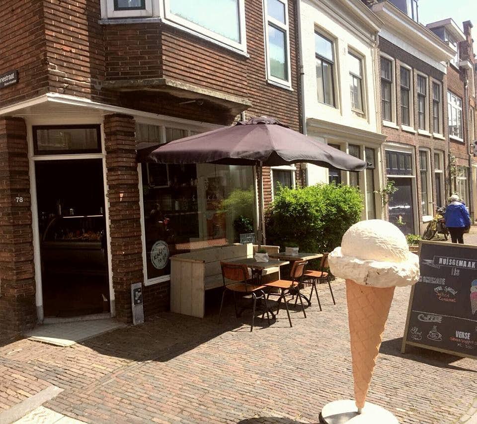 IJssalon Roberto Gelato aan de Poortstraat, de bekende salon die afgelopen jaren onder andere moedermelk en haring-ijs op het menu had staan.