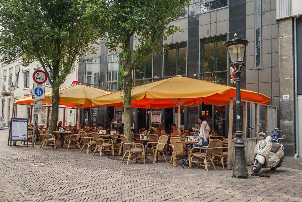 De nummer 1 van vorig jaar kan nog steeds weinig verkeerd doen. Het wordt elders in deze test ook al vermeld, het Wed is en blijft een superieure plek. Zo denken onze buren, twee keurige dames uit Breukelen, er ook over. “Naar de voorbijgangers kijken en commentaar geven, heerlijk!” We konden nog net een tafel met twee stoelen bemachtigen. Het publiek is divers, de bediening vriendelijk – al liep er een jongen rond die iets te bijdehand deed. We zitten op een terras en niet in het theater. Het beviel ons verder prima. Maar het zijn details die de eerste plek bepalen. Dat onze bestelling voor de bitterballen niet was doorgekomen, kost punten.