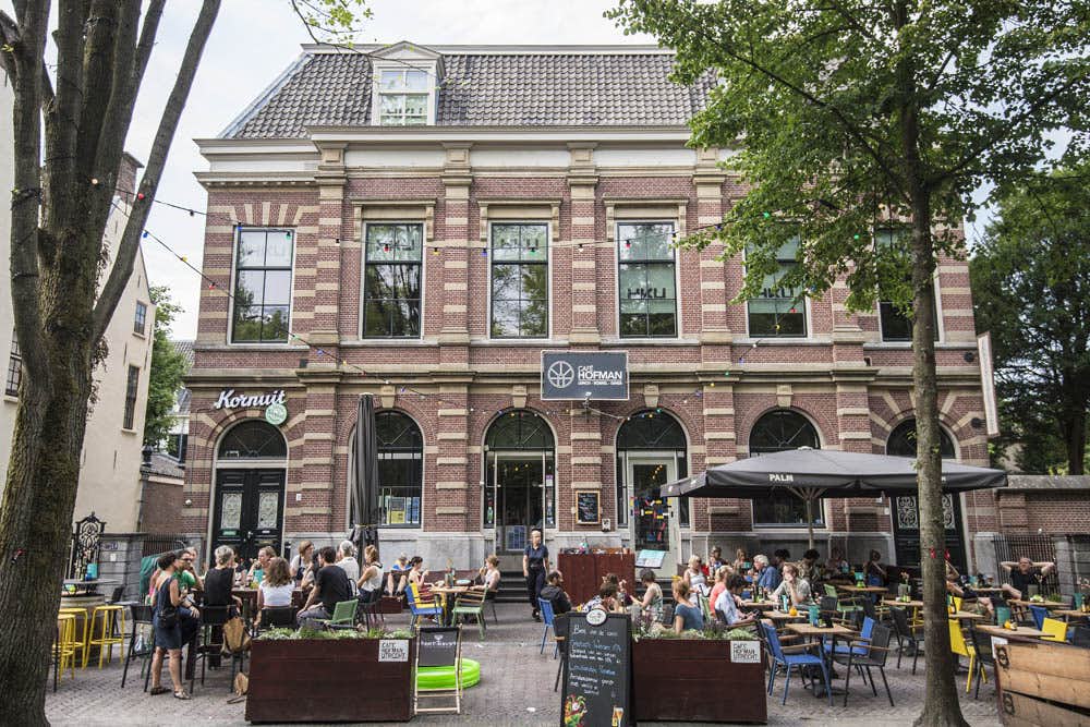 Het groene Janskerkhof is een van de mooiste plekken in Utrecht en laat daar nou net een heel fijn terras aan liggen. Misschien ligt het voor de gemiddelde terrasganger in Utrecht wat uit de richting, maar dat kan ook een pluspunt zijn voor de mensen die de drukte van de Oudegracht en de Neude willen ontvluchten. Er is zowel zon als schaduw op het fijne terras en de bediening is snel en vriendelijk. Op zaterdag ruik je de bloemenmarkt op het terras, ook de andere dagen is er genoeg te zien. Iedere donderdagavond organiseert Hofman een terrasconcert – helemaal gratis. Bovendien sluit het café zich ook graag aan bij andere festiviteiten die er op het plein worden georganiseerd. Hoewel het daar soms erg druk kan zijn, merk je dat niet op het terras – bij Hofman blijft het relaxt.