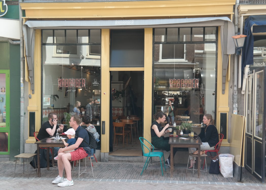 De zon schijnt, Utrecht is vrij en de Dom doet een extra lang concert. De vakantiesfeer is niet van de lucht, en op dat soort dagen doet de Zadelstraat aan als een sympathieke Parijse winkelboulevard. Rabarber doet daar met zijn fijne terras en rustige uitstraling nog een schepje bovenop. Met ook nog eens heerlijke koffie.