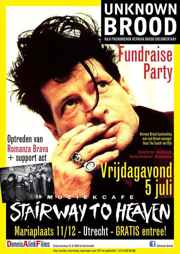 Na het ontdekken van nieuwe filmbeelden van Herman Brood werd de 23 jarige regisseur Dennis Alink door Koos van Dijk (manager van Herman Brood) gevraagd om de documentaire Unknown Brood te maken. Alleen is er nog geen geld. Daarom trekken de makers met een speciale fundraiser party door het land. Niet saturday maar wel fridaynight staat de Stairway in het teken van de rocklegende. Vanaf 18:30 is iedereen welkom in het restaurant voor een Dany Lademacher-menu. Daarna wordt het feest geopend door Dennis Alink die een trailer en beelden van de documentaire zal laten zien. Het geld moet uiteindelijk worden ingezameld met een veiling van Herman Brood zeefdrukken. De avond wordt vervolgens afgesloten door de Romanza Brava – voorheen Wild Romance. Kijk hier voor meer informatie. Vrijdag, vanaf 18:30, Stairway to Heaven.