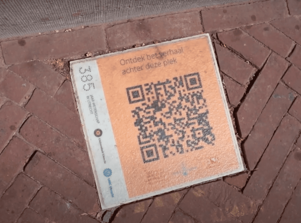 De geschiedenis in ons stadsie ligt voor het oprapen. Utrecht Time Machine maakt de geschiedenis voor liefhebbers een beetje zichtbaar: een groep studenten van de Universiteit Utrecht heeft informatie, foto’s, plattegronden en reproducties verzameld en nu op dertig historische plekken in de stad QR-tegels neergelegd. Wie de code op de tegel scant, kan een duik nemen in de geschiedenis van Utrecht. “Iedere Utrechter is al honderden keren over het Domplein gelopen, maar hoe vaak sta je stil bij wat zich daar 300 jaar geleden heeft afgespeeld?”, aldus een van de studenten.