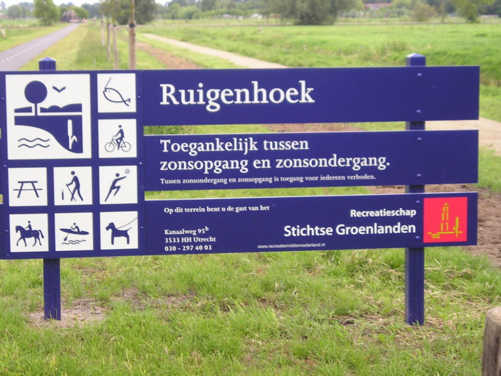 Het recreatiegebied Ruigenhoek is gerealiseerd door de landinrichtingscommissie Noorderpark, Dienst Landelijk Gebied, recreatieschap Stichtse Groenlanden, de gemeenten Utrecht en De Bilt in samenwerking met de provincie Utrecht.