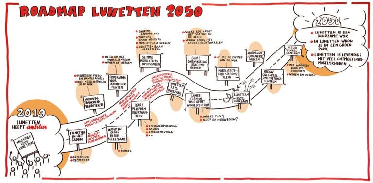 Lunetten is een wijk vol ambitie en was bij de bouw al vooruitstrevend. Kleinschaligheid was bij de realisatie van belang. In stedenbouwkundige termen noemen ze Lunetten ook wel de ‘Bloemkoolwijk’ Dit omdat het opgebouwd is uit allemaal kleinschalige buurtjes. De sociale cohesie is hierbij heel belangrijk. Er zijn veel woonerven en er is veel groen. Lunetten is ook een betrokken wijk. Verschillende werkgroepen hebben samen een Roadmap & Cartoon gemaakt om weer te geven wat de plannen zijn voor de meest duurzame wijk van Utrecht.