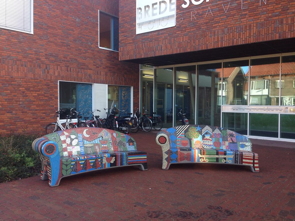 Onderleiding van kunstenares Carin van Dongen, hebben de leerlingen van de Brede School kleurrijke ontwerpen gemaakt voor het mozaïek van de banken. De ontwerpen zijn geïnspireerd op de Romeinse Limes, die dwars door Hooggraven lopen. Alle buurtbewoners waren welkom om te helpen met het beplakken van de bank, en het eindresultaat mag er wezen.