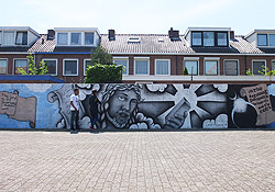 Lorenzo de Groot, voorzitter van de Ondernemersvereniging Centrum Rivierenwijk, kijkt zeer tevreden terug op het project dat als een lopend vuurtje door de buurt ging. ‘De gemeente heeft geen keurslijf aan dit project gehangen waardoor zowel de wijk als de school de vrijheid hadden om hun ding te doen. En dat bleek zeer succesvol als ik kijk naar het eindresultaat. Volgend jaar zet de Ondernemersvereniging Centrum Rivierenwijk dit project graag voort met het Grafisch Lyceum Utrecht.’